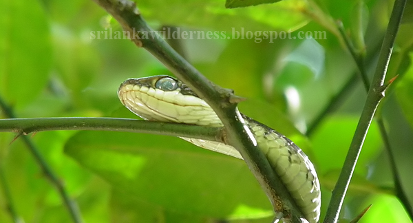 This Boulenger's Bronzeback snake used to come to a Citrus tree in the garden every day and lay still on a branch for hours, but it has been absent for two days now.